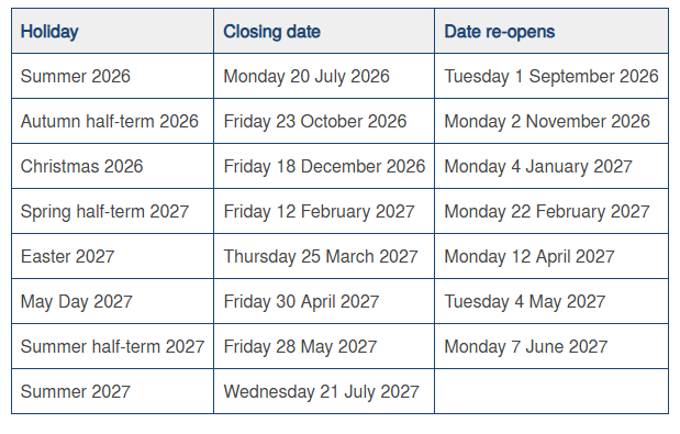 Please visit the Durham County Council website to view or download the school holidays dates for this academic year and next year for all community schools, special schools and voluntary controlled schools.